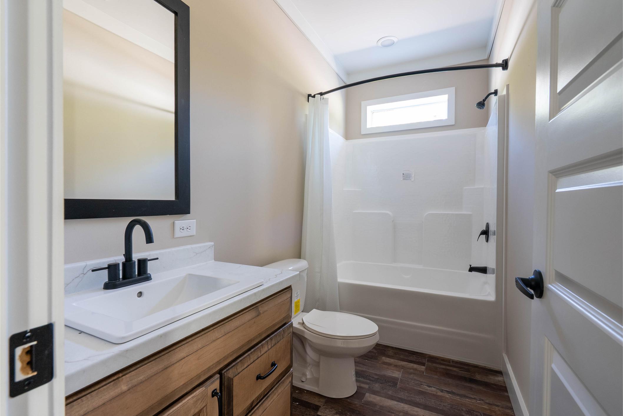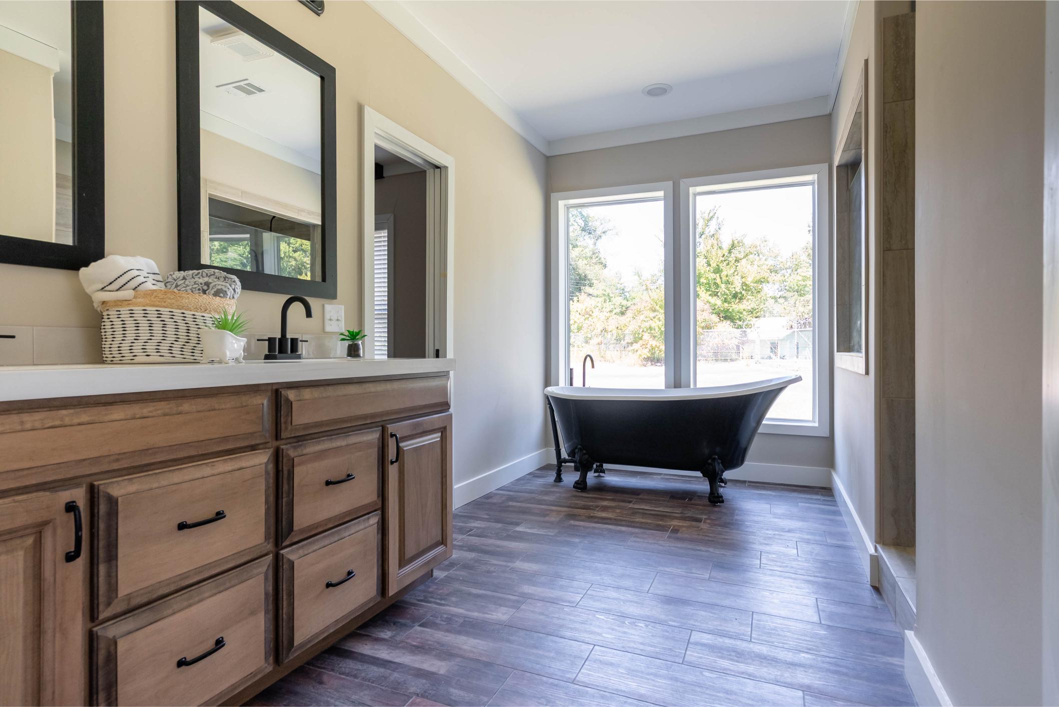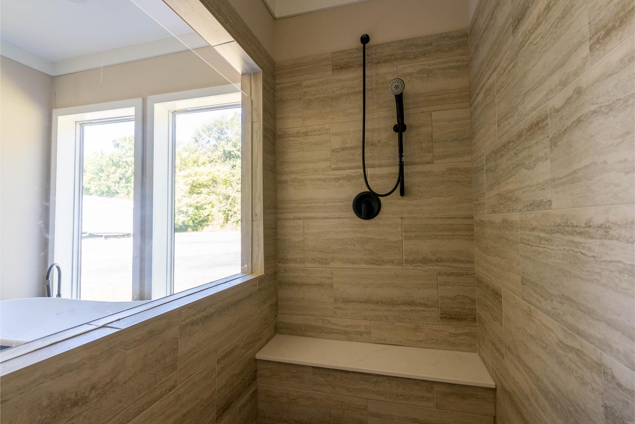 Bathroom Shower: 48” Walk-in Fiberglass Shower with Black Door in Master bath / 60” Fiberglass Tub-Shower guest bath with Deluxe Curved Shower Curtain Rod