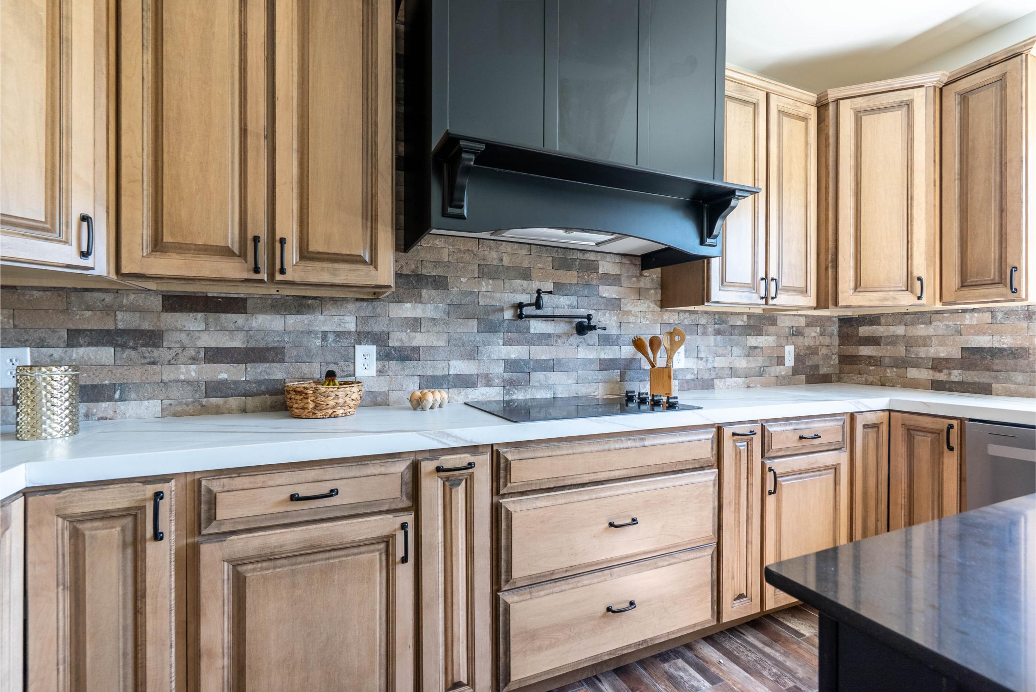 Kitchen Cabinetry: 36”/30” Staggered Overhead Stained Maple Cabinets / Deluxe Cabinet Pulls on Drawers/Doors / KITH KCMA Certified Maple Cabinet / Doors & Stiles with Birch Plywood Construction / Construction with Adjustable Shelving in Overhead Cabinets